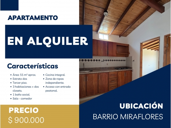 馃彚 APARTAMENTO EN ARRIENDO EN BARRIO MIRAFLORES – (PISO 3)