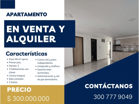 Amplio apartamento de 96 m² con excelente ubicación, cercano a parques, colegios y comercio. ¡Disponible para venta y alquiler!