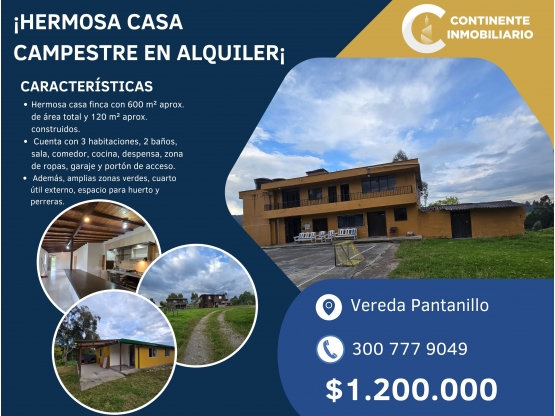 Hermosa casa finca con 600 m² aprox. de área total y 120 m² aprox. construidos.