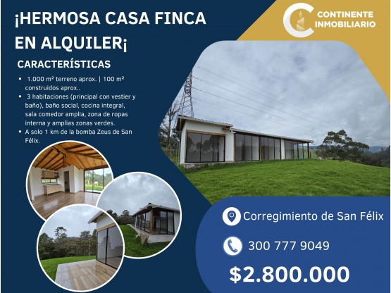 🏡 Alquiler de Casa Finca en el Sector Manantiales – Corregimiento San Félix, Bello (Antioquia)