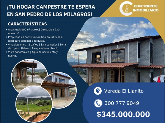 🌿🏡 ¡Tu hogar campestre te espera en San Pedro de los Milagros! 🌄✨