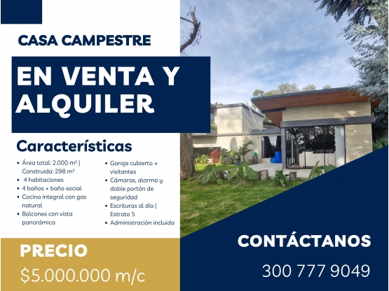 🌿 ¡VIDA EXCLUSIVA EN EL CAMPO! CASA CAMPESTRE CON VISTA PANORÁMICA EN VENTA Y ALQUILER ✨