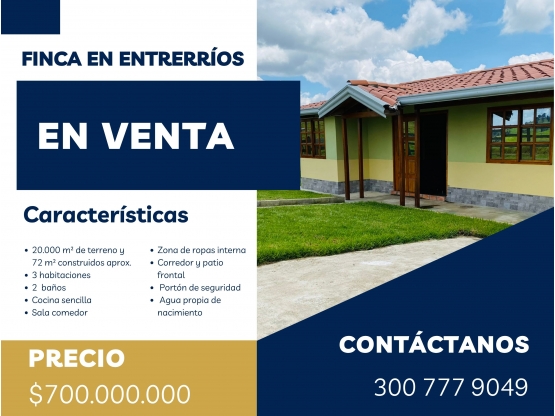 Se vende hermosa finca ubicada en un entorno natural privilegiado, en la vereda El Potrero, Hacienda Yerbabuena del municipio de Entrerríos, un lugar ideal para quienes buscan tranquilidad, aire puro y contacto con la naturaleza.