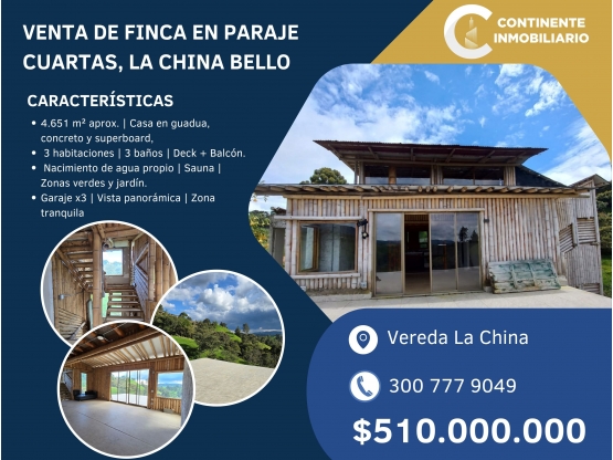 🏡 Venta de Casa Finca en Paraje de Cuartas – La China, Bello